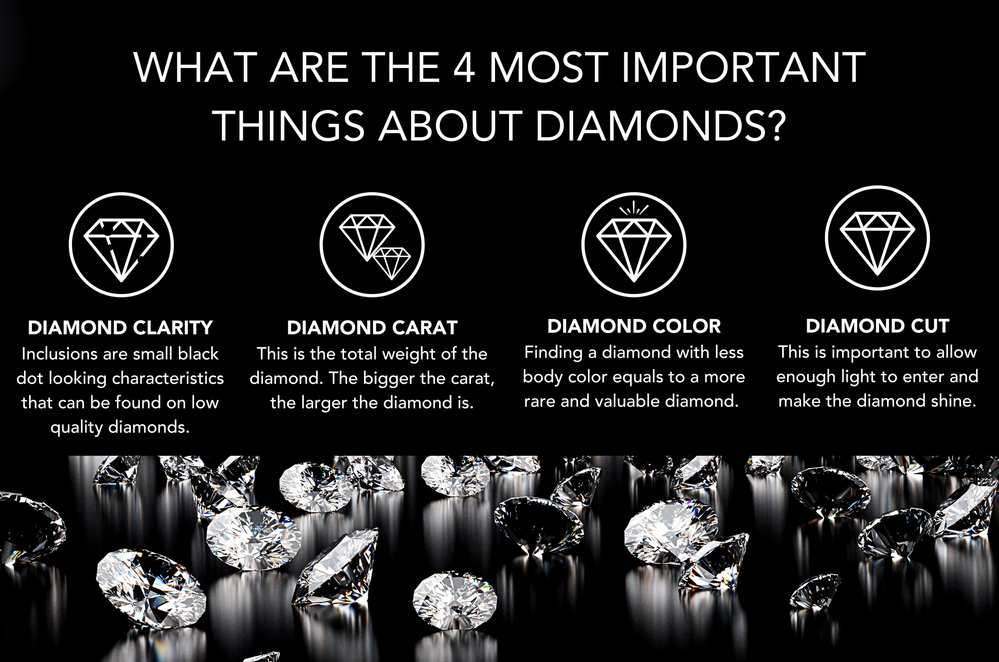 There are 4 C’s to know when buying Diamond Jewelry.Carat, Cut, Color, and Clarity. At ITMFL we always provide exceptional quality jewelry and care for all our customers:Explore our Diamond Collection